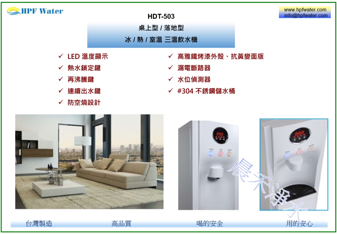 | 供水 | 冰水 / 熱水 / 室溫水 | 冰水 / 熱水 / 室溫水 |